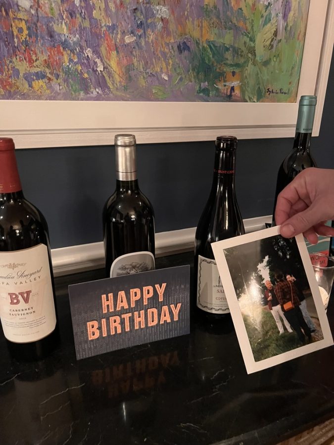 It was cold and snowy in Buffalo. I asked him if he wanted to grill outside, and he said, ‘Yes, that’s how I want to remember turning 69,’ so it was steaks on the grill in winter and carrot cake for dessert.