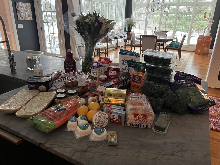 We had nothing in the house as we had been gone for ten days. I picked up the usuals and added steaks, potatoes, broccolini, store-prepared garlic bread, spinach artichoke dip supplies, carrot cake supplies, ice cream, fresh flowers, and birthday candles. I hurried home and hit the kitchen; the family was due at 6 pm.