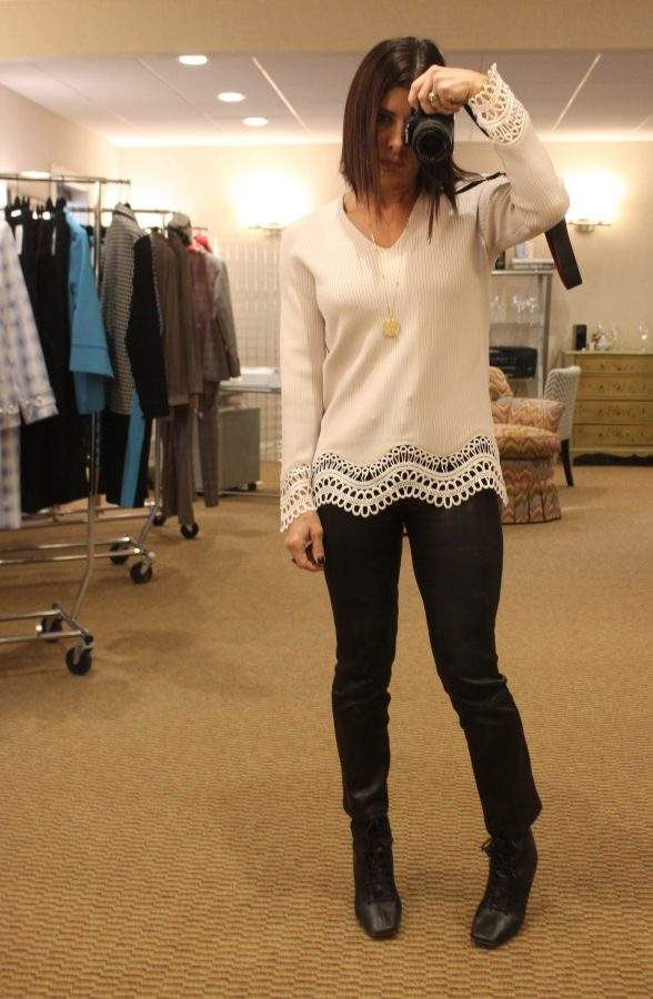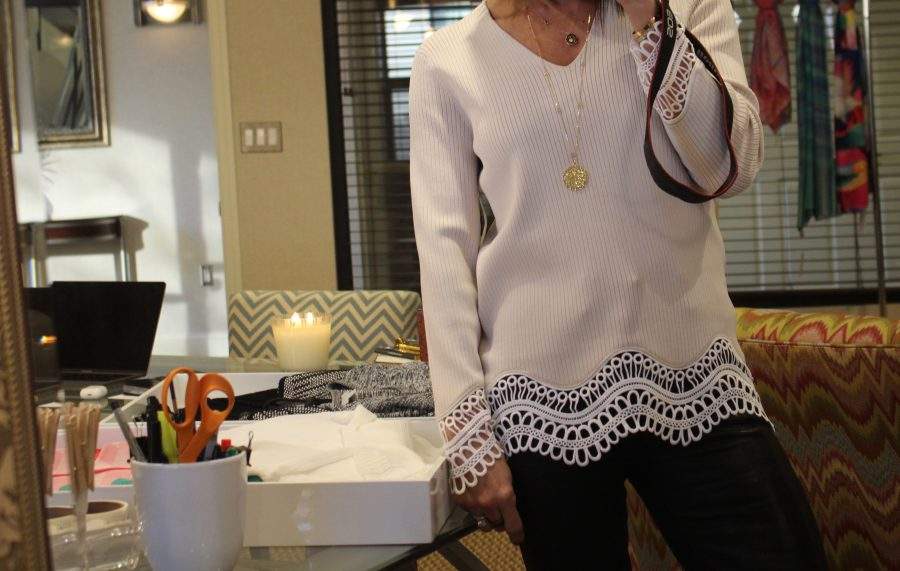leather pants and spring sweater on a Sunday afternoon in January, thinking this piece needs a swimsuit and a yacht, hahah
