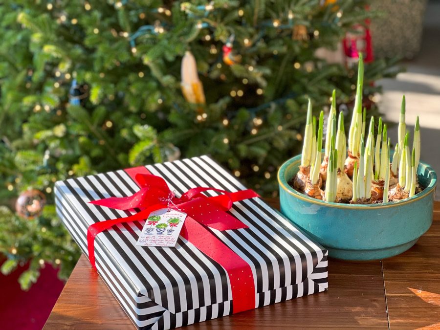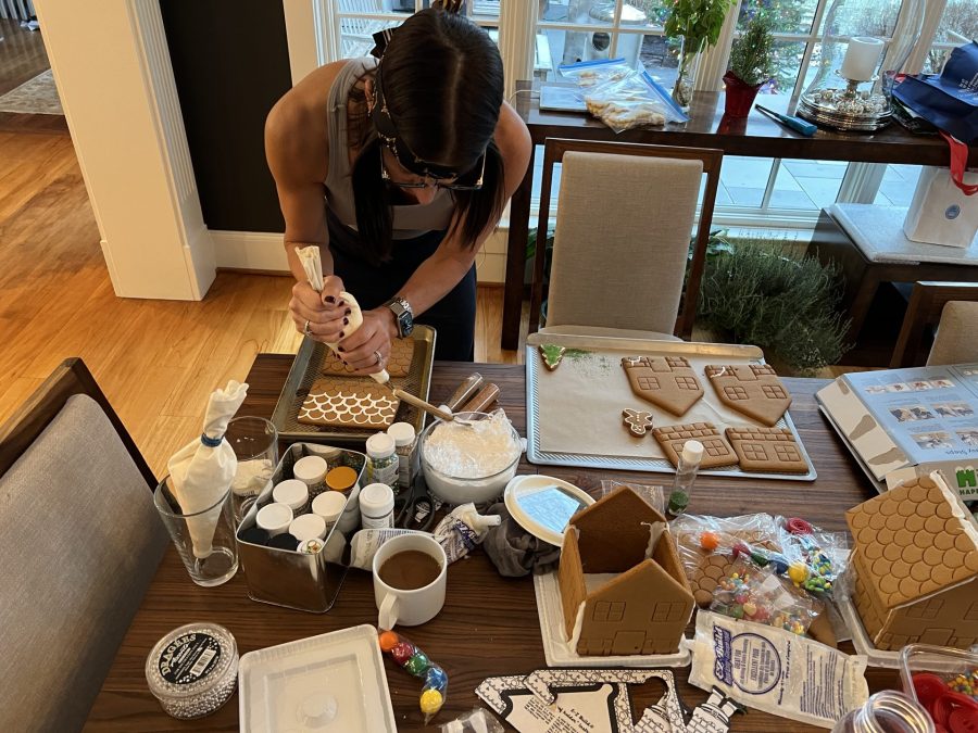 gingerbread houses and hot coffee in the early morningWe weren’t going anywhere; our arts and crafts sessions lasted for daysdecorated cutoutsa wrapped gift for my niece Erin and forced paperwhites