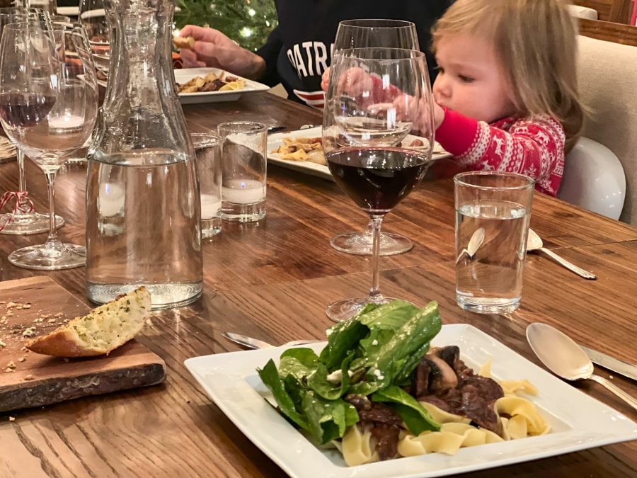 We make the most of mealtime, juggling place cards and removing table extensions. Last night for New Year’s Eve, we had a cozy four-top after the little’s went to bed and an outdoor champagne toast with Booie, who is just out of quarantine.