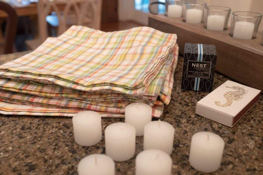 Of course, these places are well loved homes, and of course some of the every day necessities they leave out for valid reasons (like fire): table linens, candles, and matches. Wherever we land I go out and gather fresh flowers, cloth napkins, some sort of candles or votives, and matches to get things going. When all is said and done, I pack those things up, bring them home, and they all make lovely memories of very special times away.