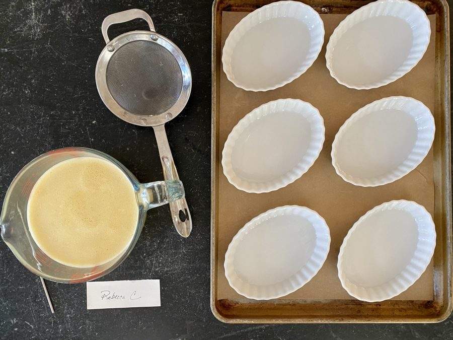 I’ve been making team Ina’s Crème Brûlée for years now, and to much applause. Single batch, double, triple, didn’t matter how many guests I was serving, I made each recipe one at a time and they always turned out great. One thing I did on my own was to strain the hot mixture before pouring into ramekins, I didn’t really understand why you wouldn’t.