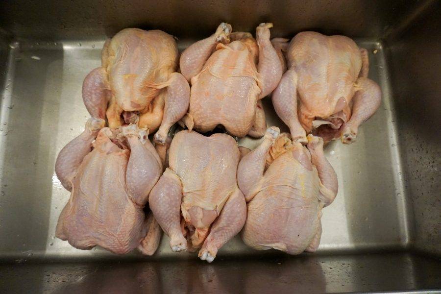 The back bones were saved for stock, the rest of the whole shebang was put in the fridge, we had other things to do.