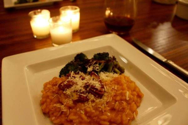 pumpkin risotto garnished with toasted pecans